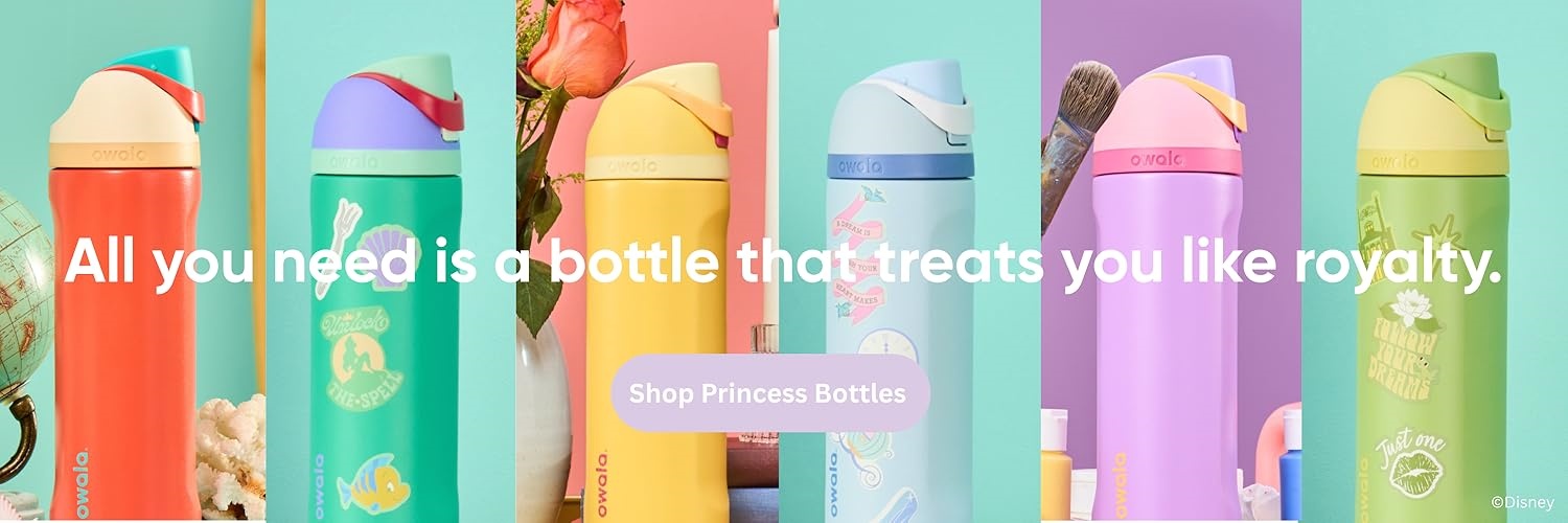 Owala Disney Princess FreeSip Insulated Stainless Steel Water Bottle with Straw for Sports and Travel, BPA-Free Sports Water Bottle, 24 oz, Ariel(Slytherin)