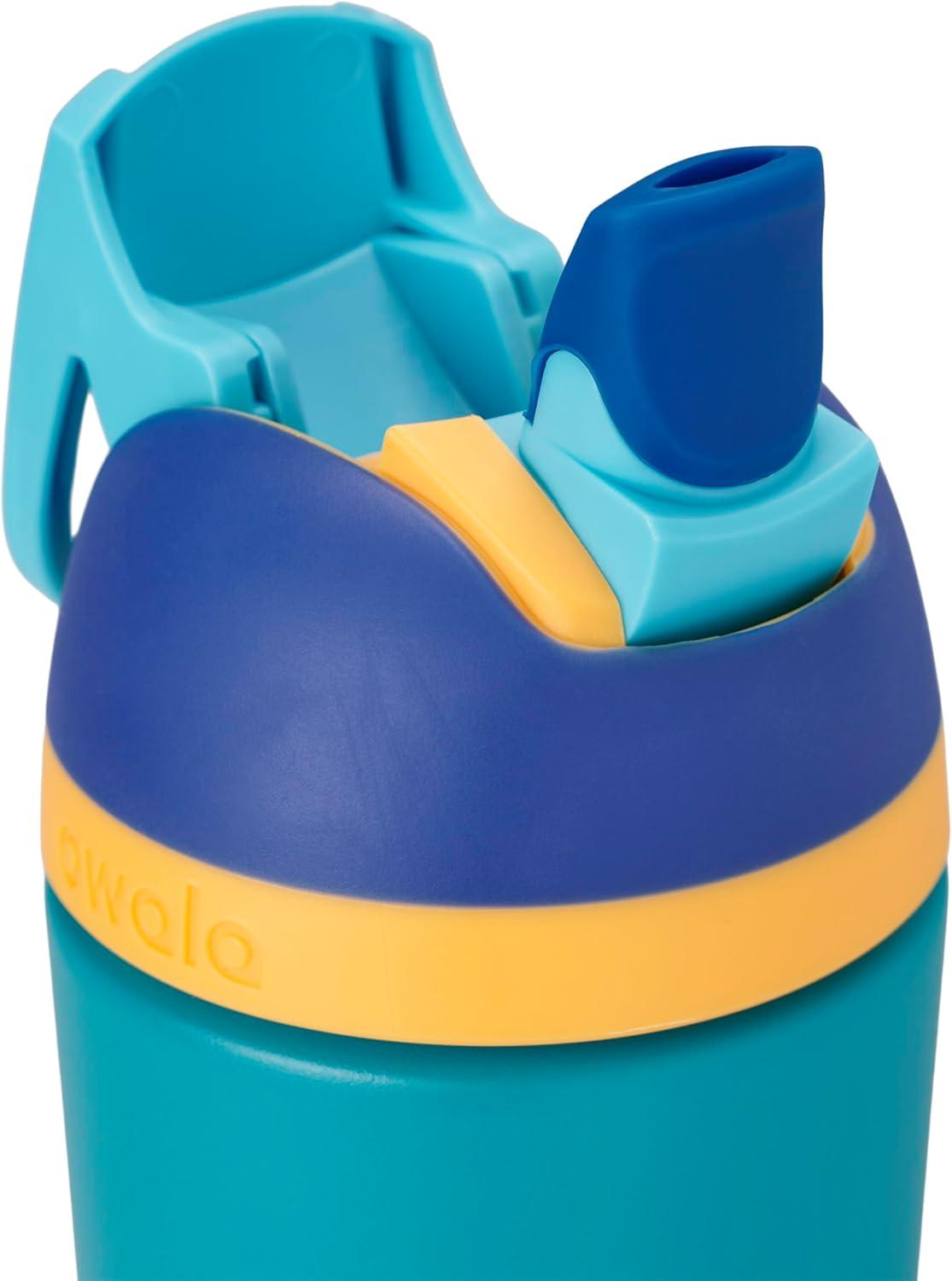 Owala Kids Flip Insulated Stainless-Steel Water Bottle with Straw and Locking Lid, 14-Ounce, Blue/Teal (Splishy Splashy)