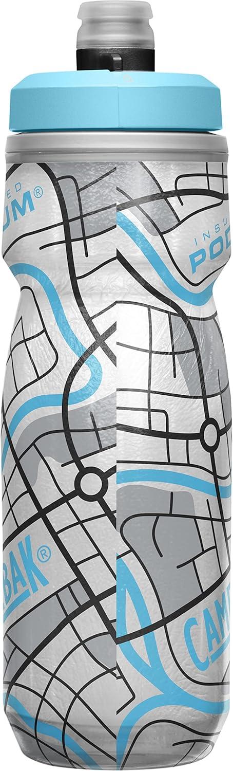 CamelBak Podium Chill Bike Insulated Squeeze Water Bottle Black, 21oz(Grey/Teal Stripe)