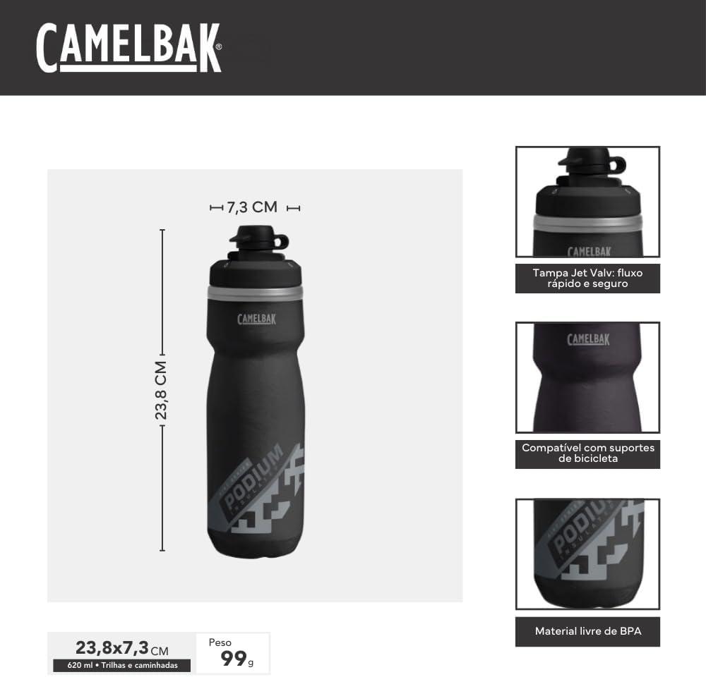 CamelBak Podium Dirt Series Chill Insulated Mountain Bike Squeeze Water Bottle Black, 21oz(Black)