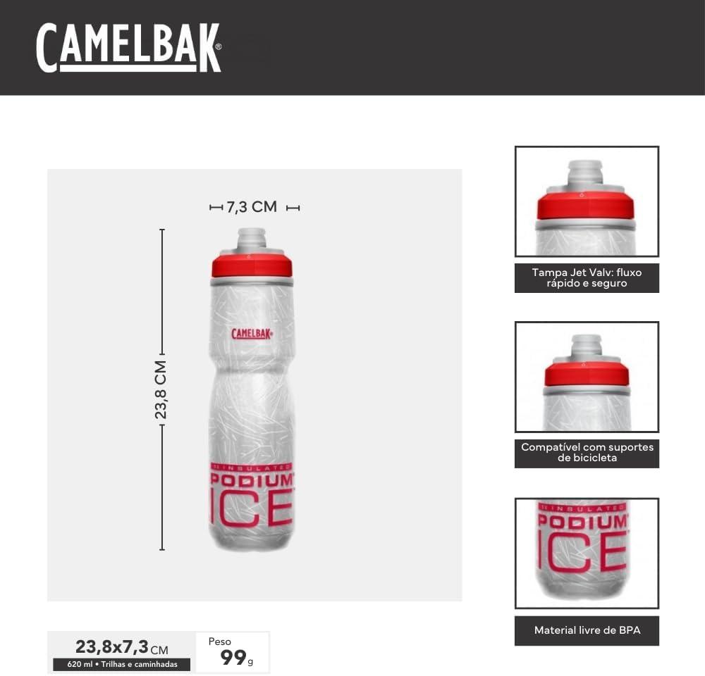 CamelBak Podium Ice Bike Insulated Squeeze Water Bottle Black, 21oz(Fiery Red)