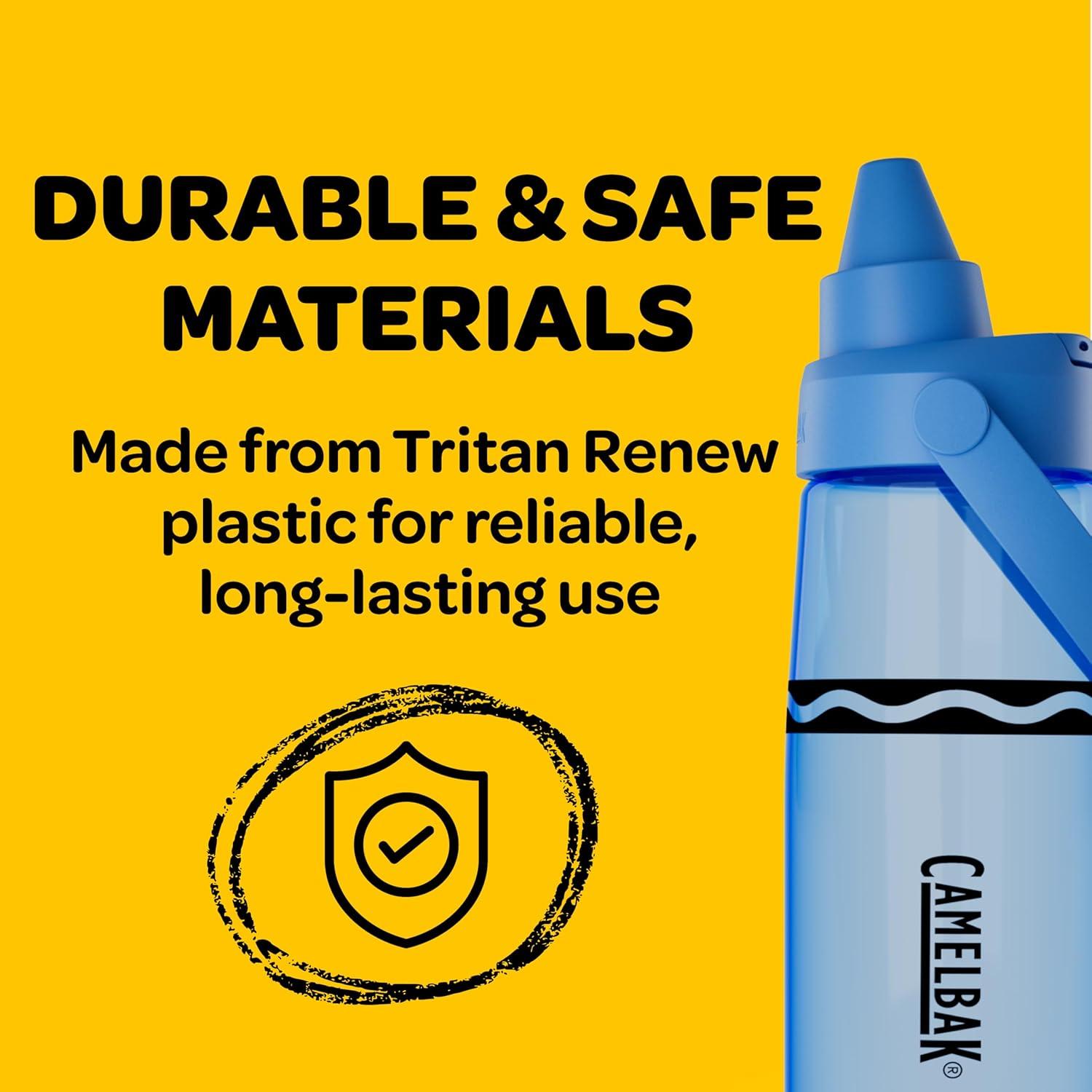 Chug in color with the CamelBak Crayola Chug 25oz Water Bottle. This vibrant edition combines bold hydration with iconic Crayola creativity, featuring signature colors and a crayon-inspired cap that adds a playful twist to serious performance. The chug-style lid delivers quick, easy sips for athletes, adventurers, and anyone on the move. Made from durable Tritan Renew plastic, this bottle is built for everyday adventures and designed to keep you energized and ready to explore your world.