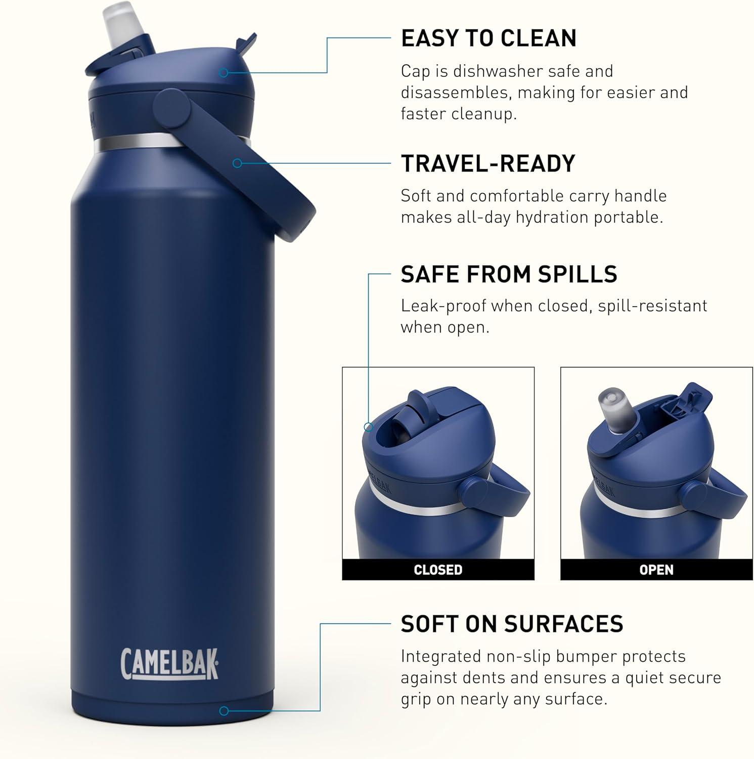 CamelBak Thrive Flip Straw Insulated Stainless Steel Water Bottle Sky Blue, 25oz(Navy)