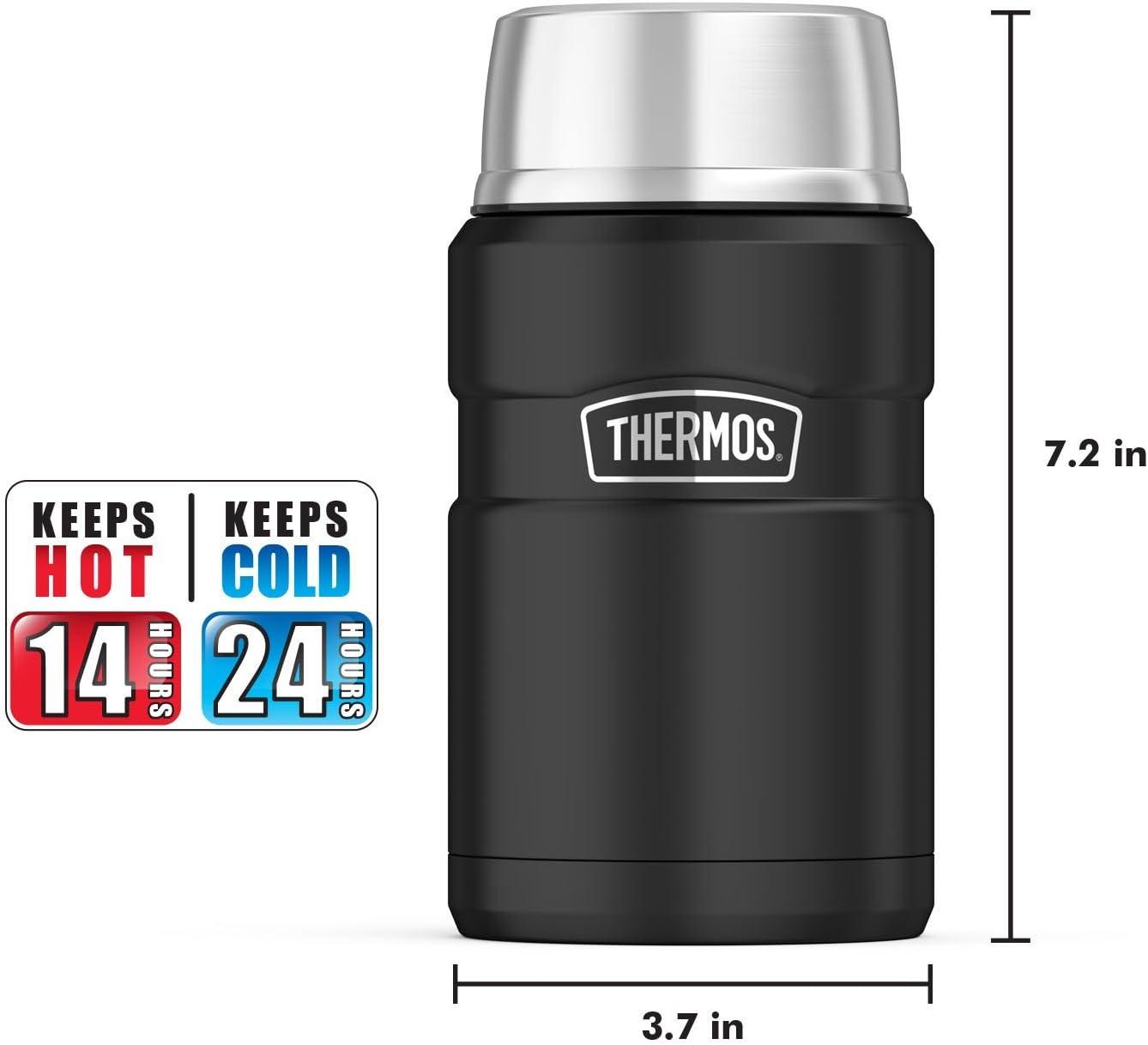 THERMOS Stainless King Vacuum-Insulated Food Jar with Spoon, 16 Ounce, Midnight Blue(Matte Black)
