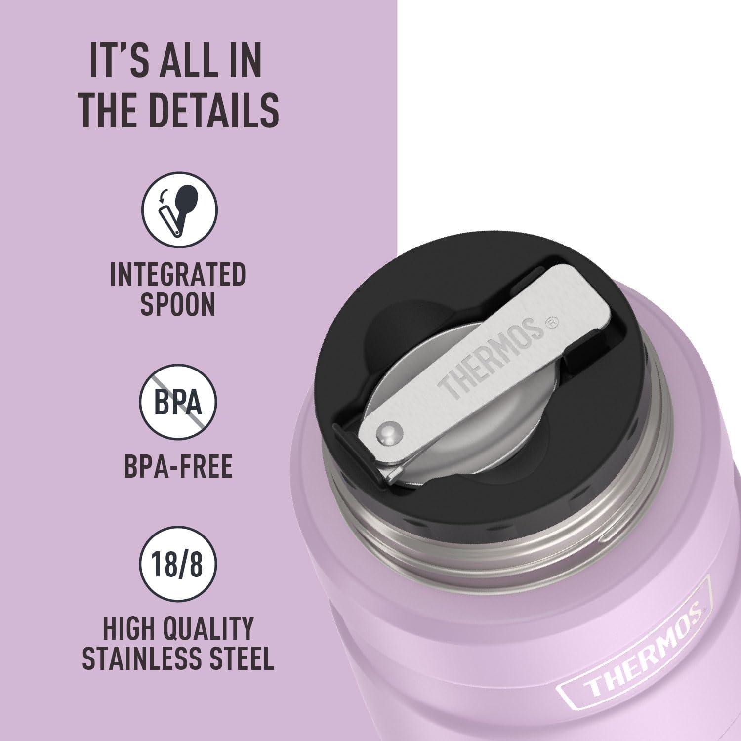 THERMOS Stainless King Vacuum-Insulated Food Jar with Spoon, 16 Ounce, Midnight Blue(Matte Lavender)