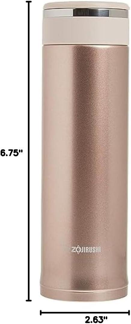 Zojirushi's Flip-and-Go Stainless Mug is designed with a Flip-and-go handle for convenient carry and folds down for a comfortable hold. The bottle is lightweight and compact for added portability. The one-touch, flip-open lid is easy to operate with one hand, even when wearing gloves. The 2-step lid release process prevents excess condensation on the stopper from being flung off while the lid opens and locks back. The air vent allows beverages to flow out smoothly without gushing or overflowing. Lid also features an easy-to-operate slide lock to keep the lid from opening accidentally. Wide mouth opening (1-5/8″) accommodates full-size ice cubes and is easy to fill. Made of BPA-free plastic and stainless steel and a 5 year on heat retention.