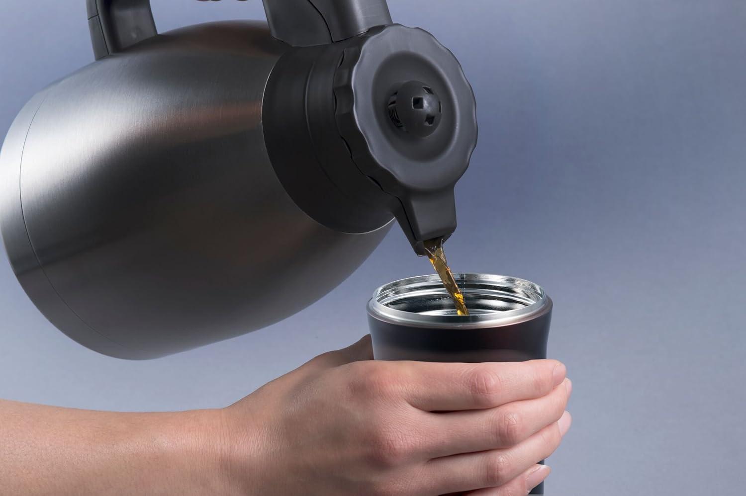 Stainless steel vacuum insulation keeps beverages hot or cold for hours